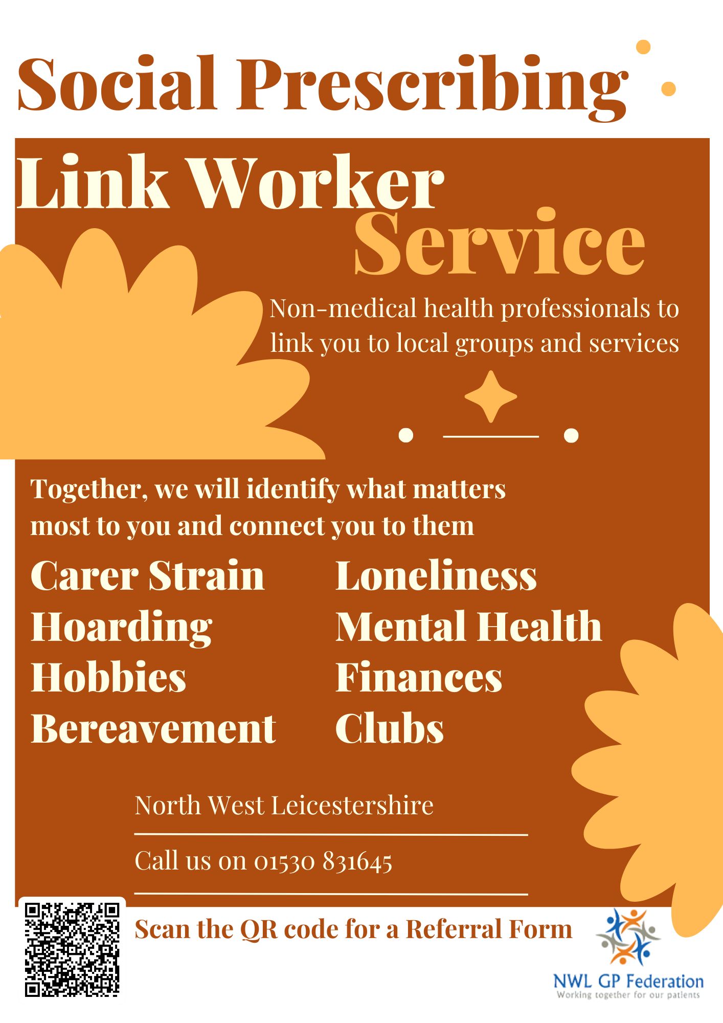 As part of our ARRS staff role, Social Prescriber link workers can help you with social, emotional and practical needs. They will listen to you, get to know you, understand your circumstances and what matters to you – with a plan tailored to you.